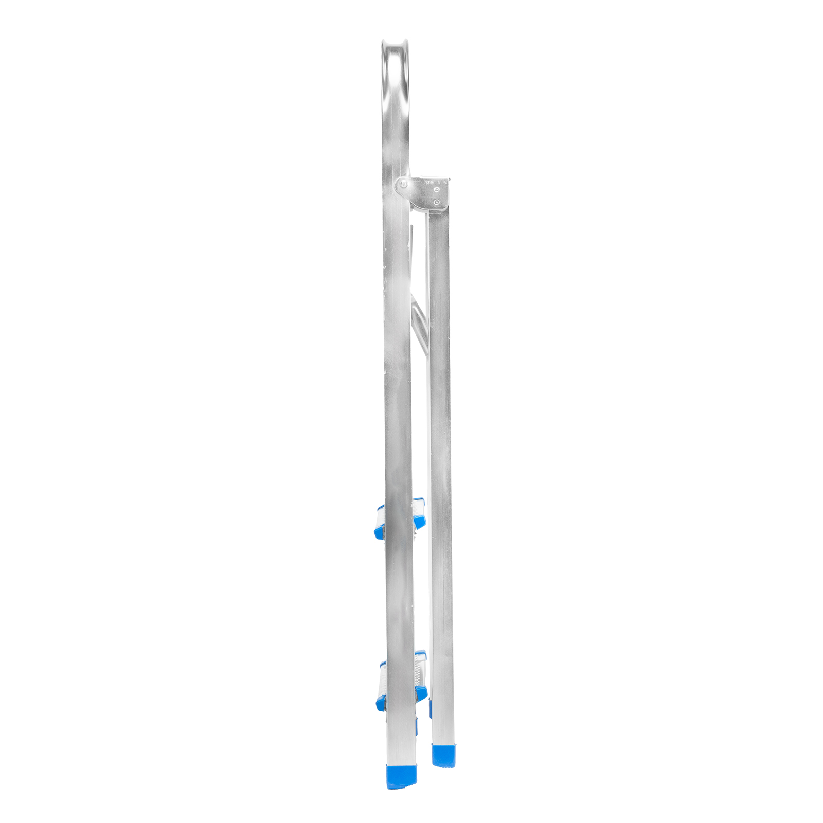 - Простая установка — на верхней площадке предусмотрены специальные зацепы для фиксации стремянки в разложенном состоянии.