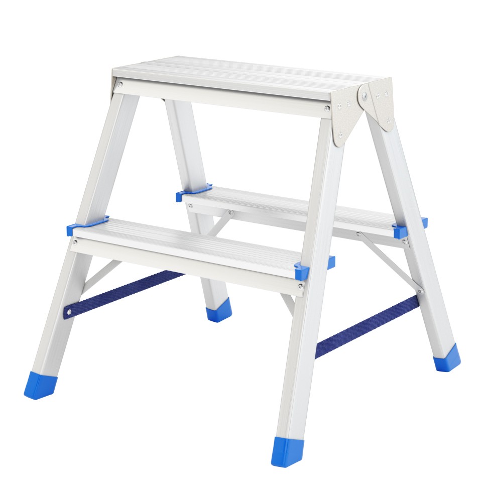 - Широкие профилированные ступени для длительной работы на высоте с противоскользящим рифлением.