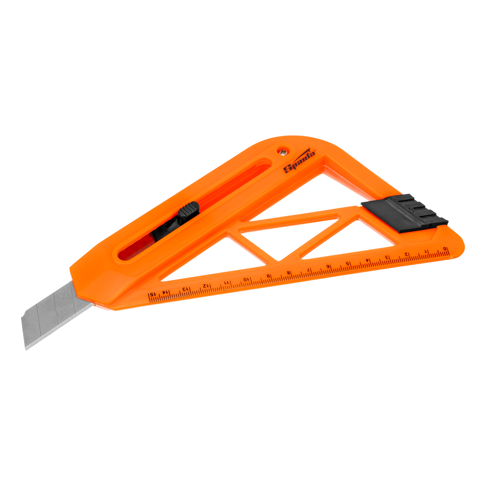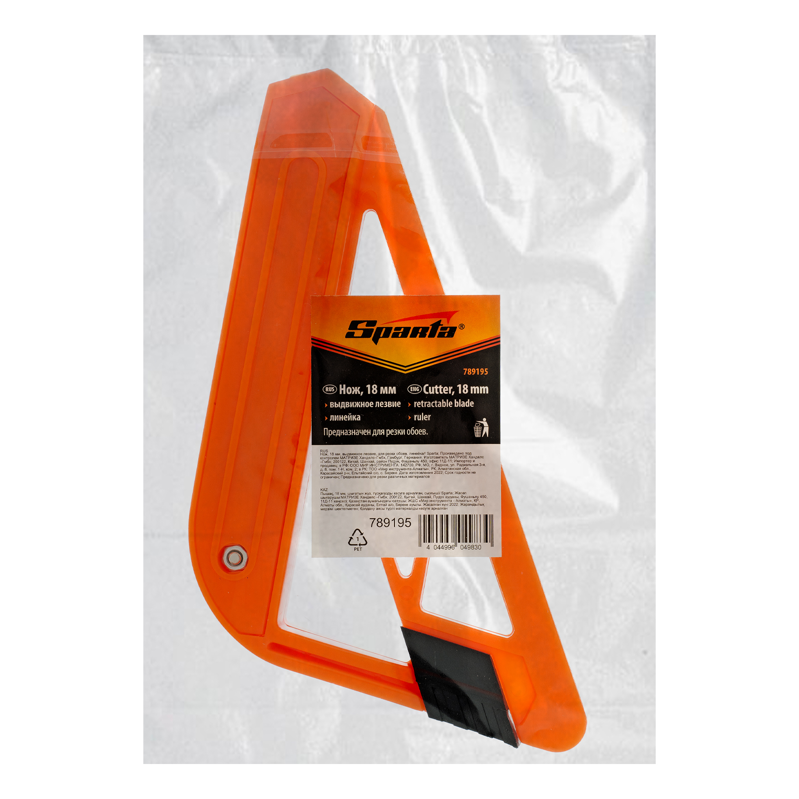 Нож Sparta 789195 с выдвижным лезвием шириной 18 мм и линейкой предназначен для резки обоев, раскроя линолеума и других материалов. Встроенная линейка с миллиметровой шкалой позволяет контролировать величину разреза. Нож будет полезен при проведении отделочных работ.