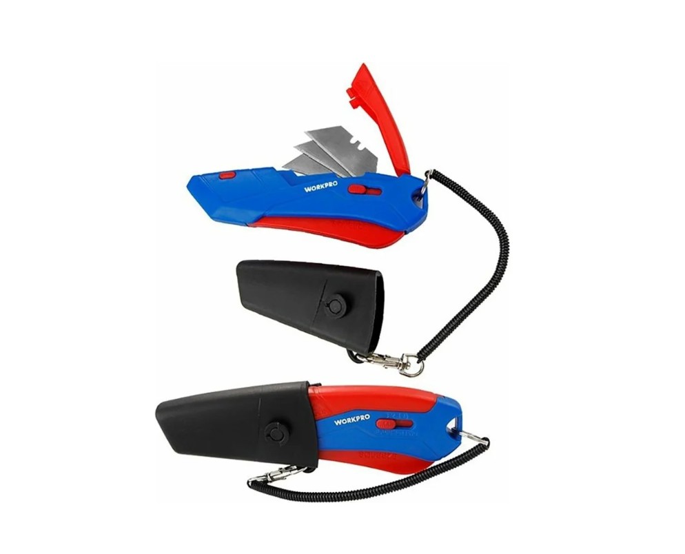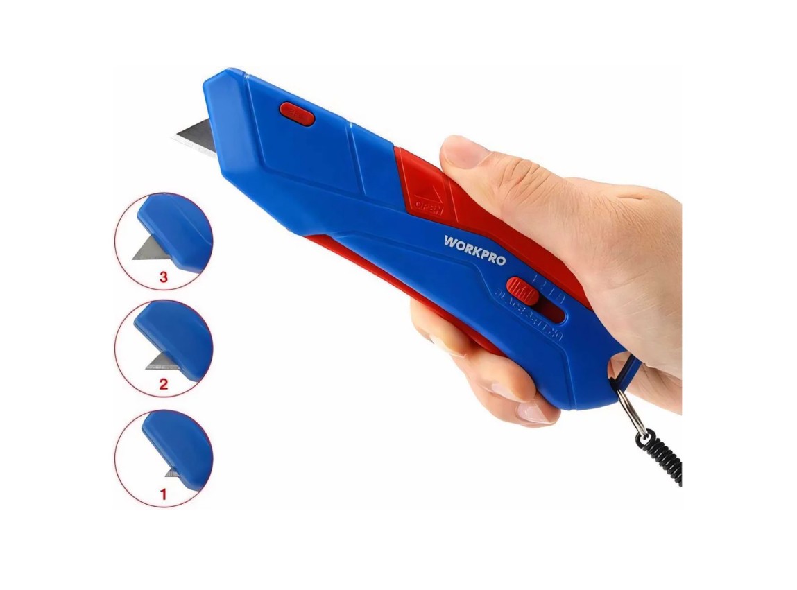 Нож выдвижной пластиковый в безопасном чехле WP213010 используется для резки бумаги, картона, линолеума и других целей. Корпус выполнен из качественного ABS-пластика. Специальный пластиковый чехол защищает головку инструмента и обеспечивает безопасную переноску.