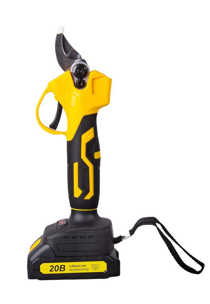 Аккумуляторный секатор, предназначен для обрезки небольших сучьев и ветвей диаметром до 30мм (мягкая древесина) и до 25мм (твердая древесина)
