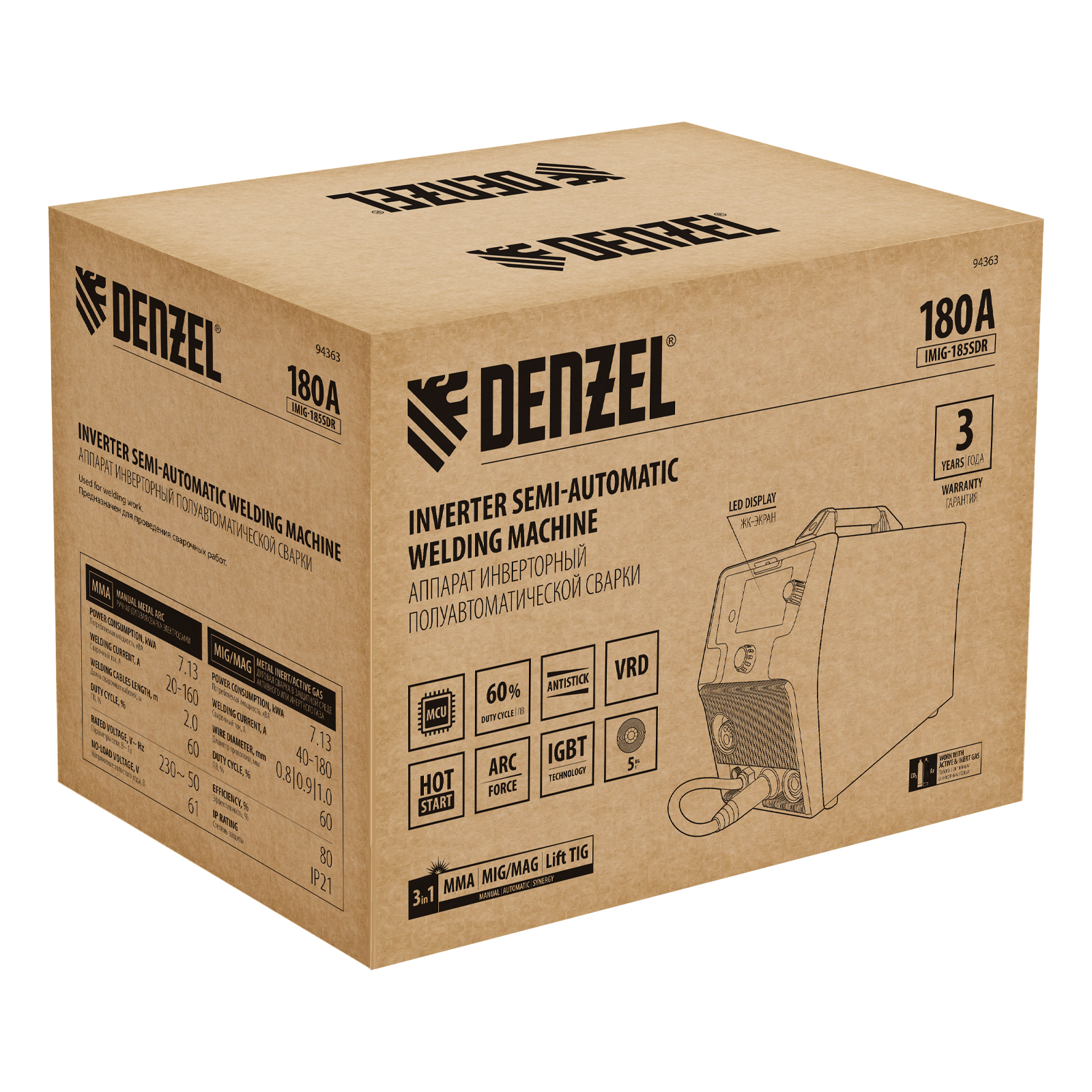 Аппарат инвертор. полуавтомат. cварки IMIG-185SDR, 180 А, ПВ 60%, катушка 5 кг// Denzel