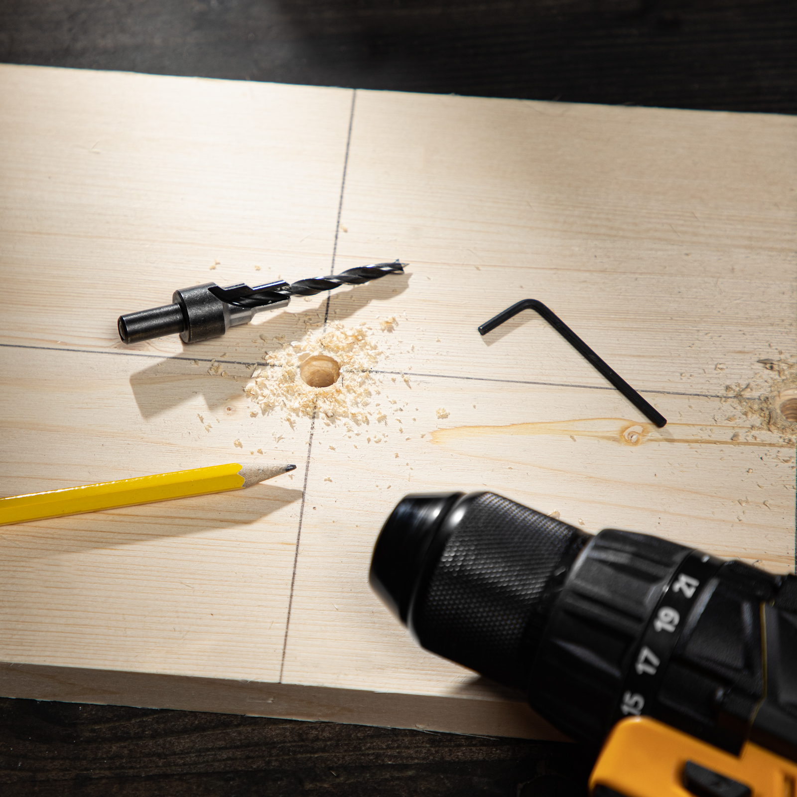 - Полная комплектация — оснастка поставляется с имбусовым ключом для фиксации сверла.