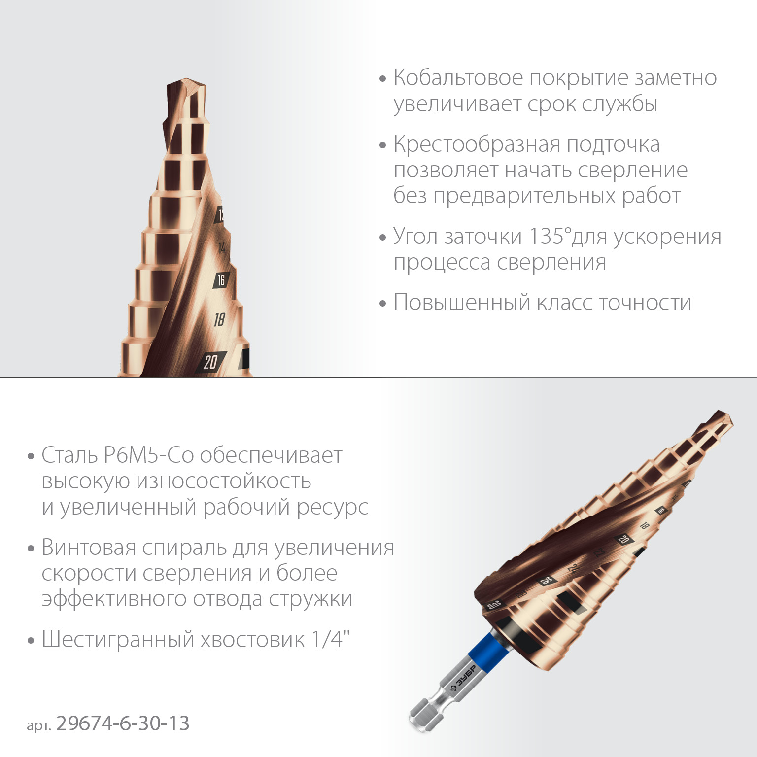Тип хвостовика Шестигранный хвостовик HEX 1/4″