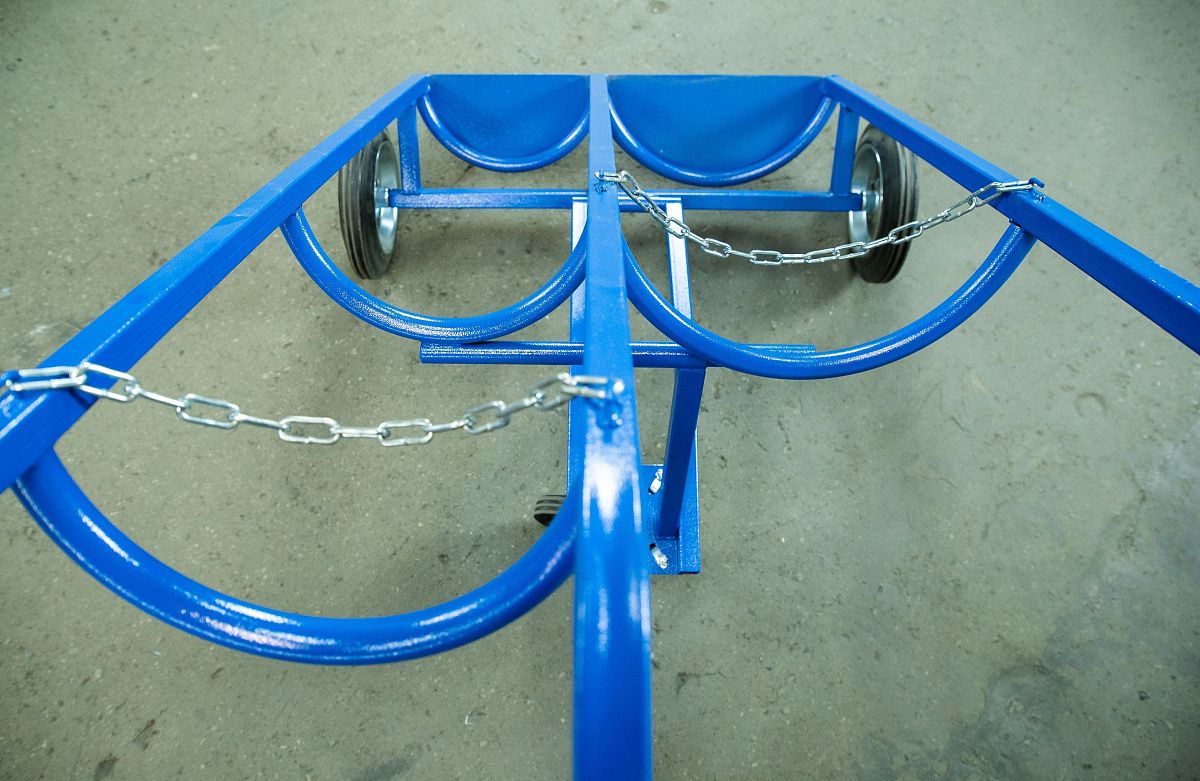 Тележка грузовая TOR ТГК-П используется для одновременной перевозки 2 баллонов (кислород, пропан) объемом 40л и 50л. Тележка поставляется с комплектом литых резиновых колес.
