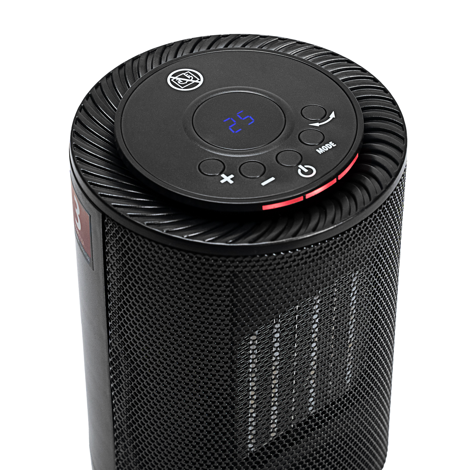 - Керамический нагревательный элемент — тепловентилятор не выделяет вредных веществ, не сушит воздух и не сжигает пыль.