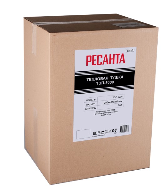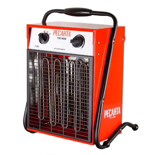 Тепловая электрическая пушка РЕСАНТА ТЭП-5000 предназначена для вентиляции и обогрева жилых и производственных помещений, складов, гаражей, а также для обогрева и сушки в строительстве.