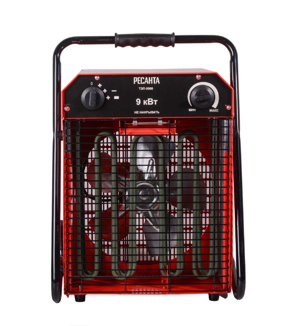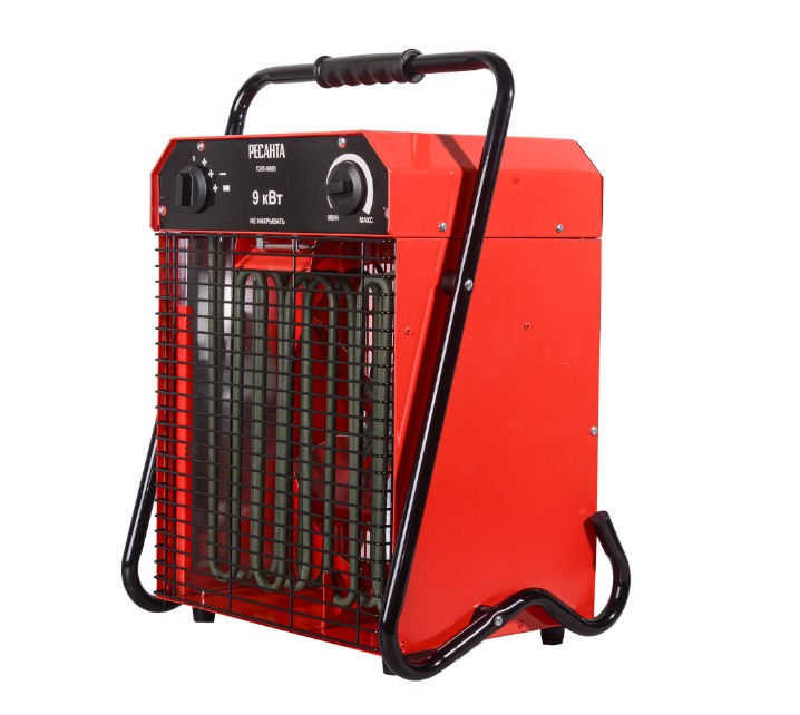 Тепловая электрическая пушка РЕСАНТА ТЭП-9000 предназначена для вентиляции и обогрева жилых и производственных помещений, складов, гаражей, а также для обогрева и сушки в строительстве.