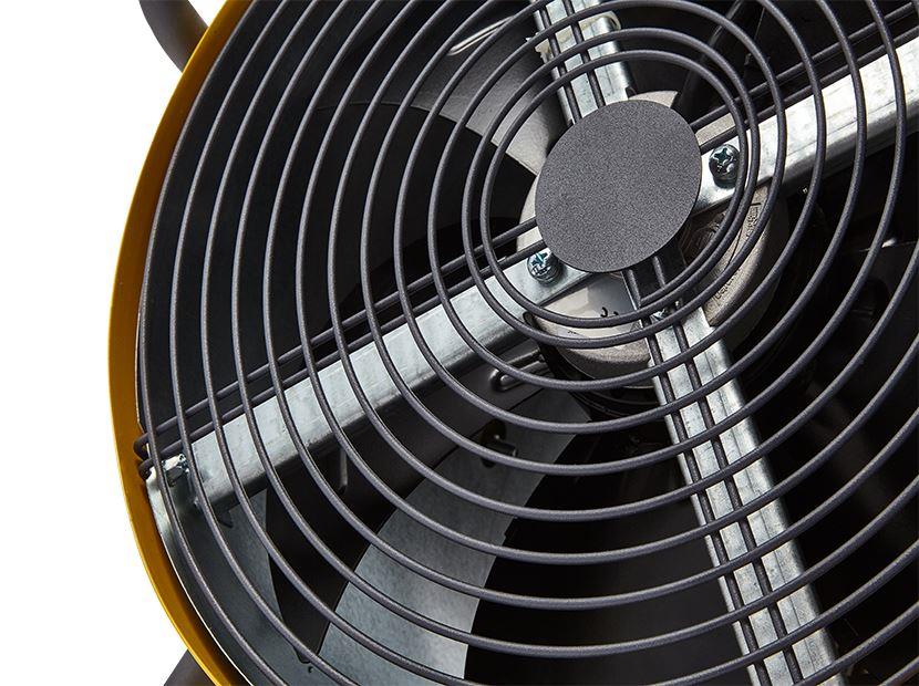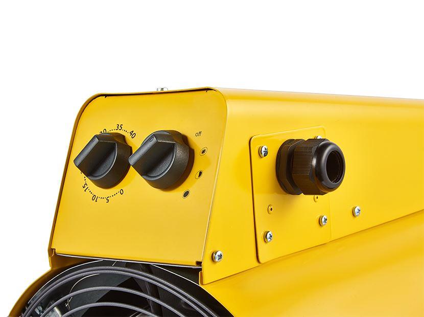 В цилиндрическом корпусе пушки нагревательные элементы особой формы способствуют созданию более эффективного направленного воздушного потока. В пушке предусмотрено два режима мощности и режим вентиляции. Обогреватель питается от сети 400В и имеет кабельный ввод на корпусе, что обеспечивает простоту и надежность подключения.