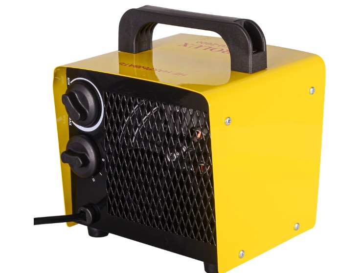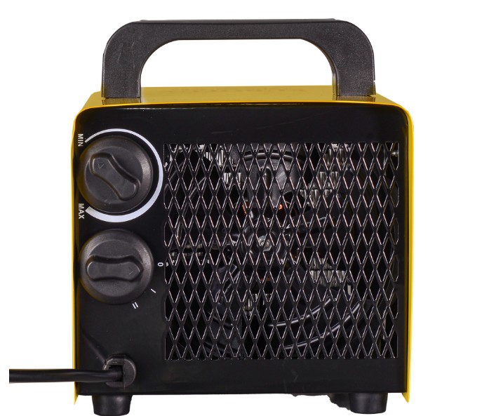 Электрическая тепловая пушка работает в 2 режимах мощностью 1 и 2 кВт. Это позволяет учитывать особенности помещения и экономить электроэнергию. Прибор может использоваться в качестве вентилятора без нагрева воздуха. Режим вентиляции позволяет охладить поверхность и улучшить воздухообмен. Механические регуляторы мощности и термостата вынесены на панель управления. С их помощью можно автоматически поддерживать выбранную температуру.