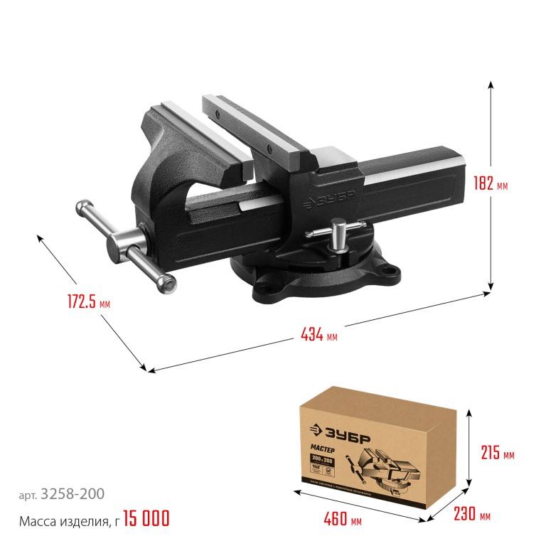 Тиски поворотные слесарные ЗУБР 3258-200_z02, предназначены для надежного фиксирования деталей и заготовок. Усиленный корпус. Рельефная поверхность губок для надежного и безопасного крепления деталей. Надежная конструкция. Закаленыe стальные губки.