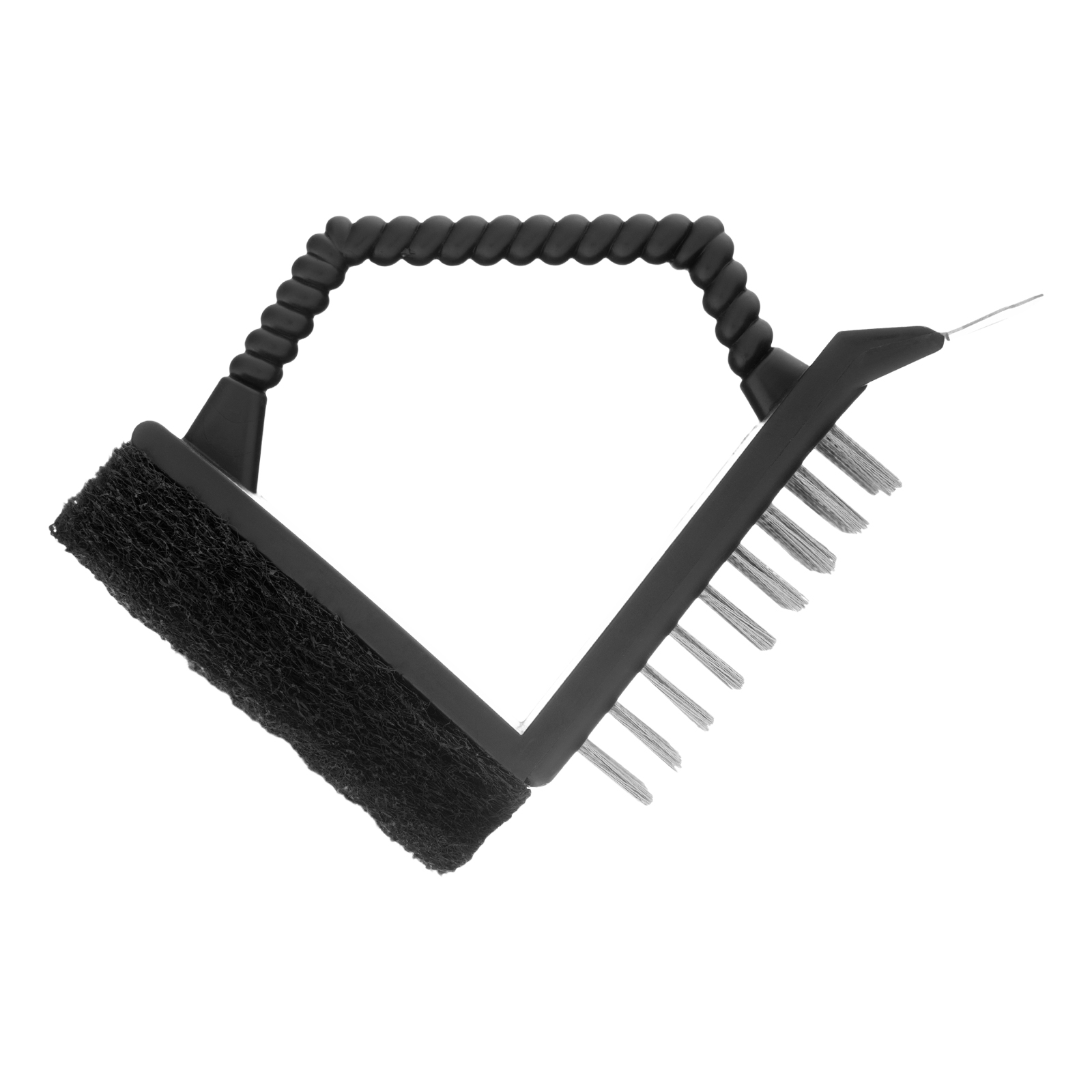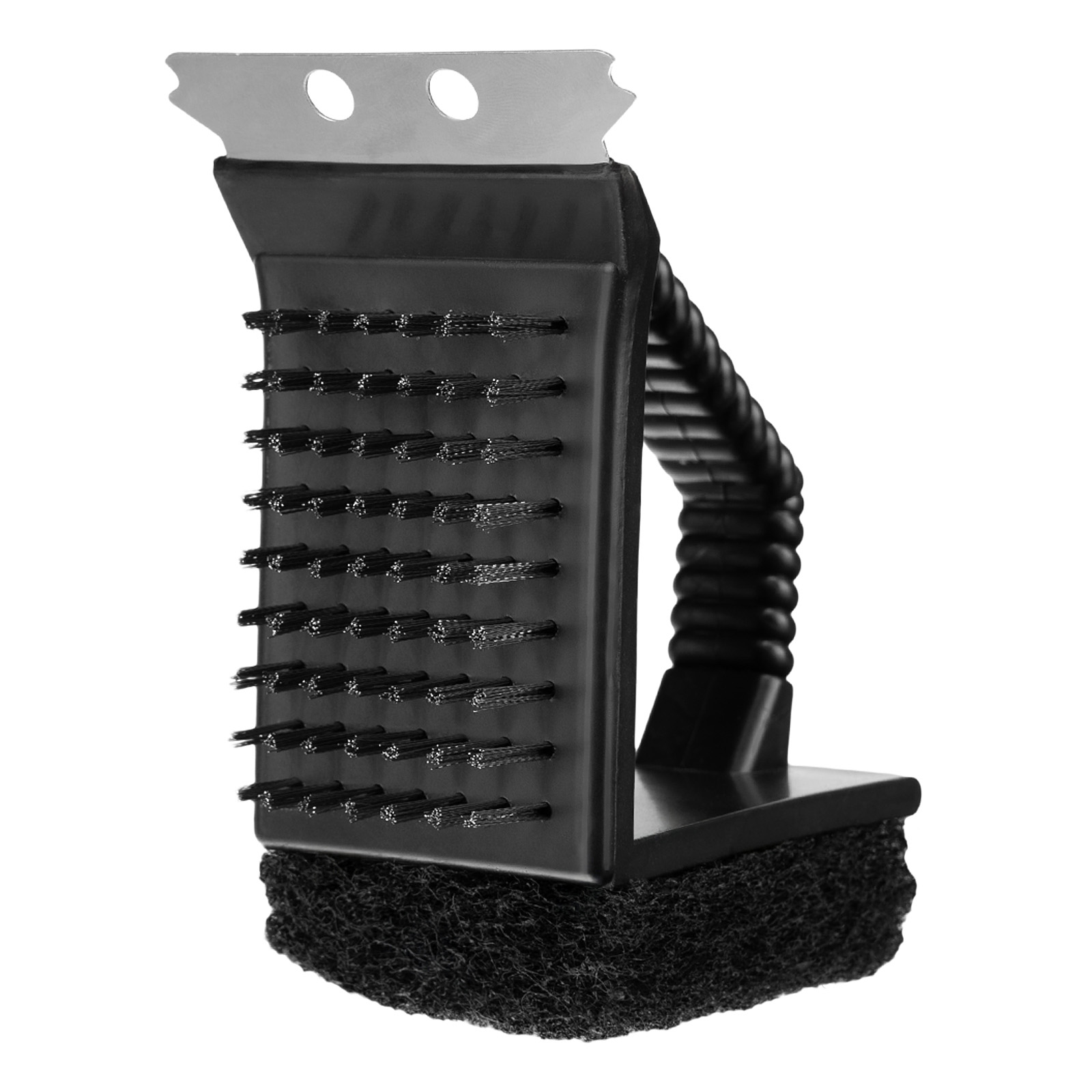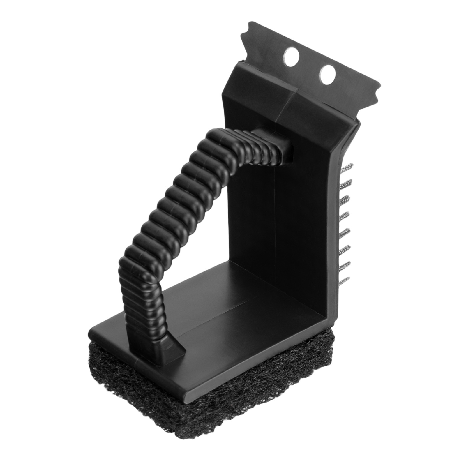 - Эффективность — стальная щетина удаляет остатки жира и засохшие кусочки продуктов, мягкая губка убирает мелкие загрязнения.