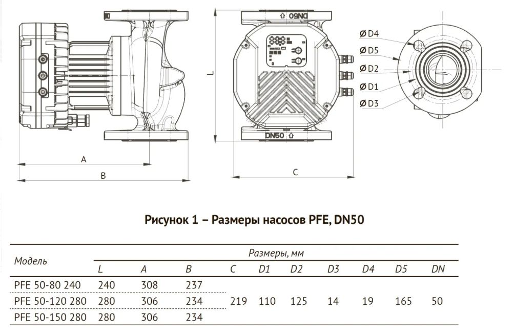 Присоединительный размер фланец DN50