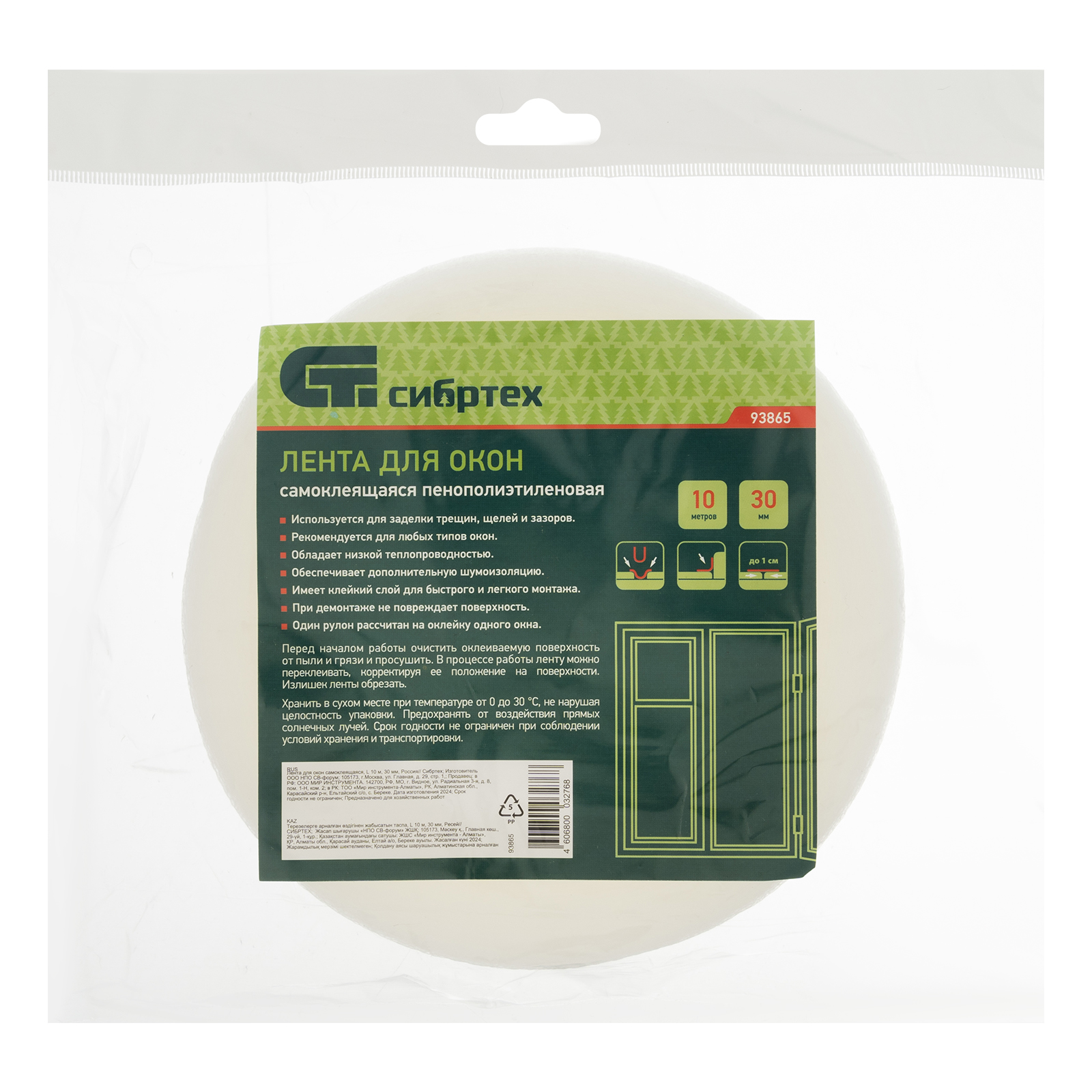 Самоклеящаяся лента для окон и дверей Сибртех 93865 шириной 30 мм и длиной 10 м используется для тепло- и звукоизоляции квартиры, офиса, магазина и других помещений. Позволяет предотвратить образование сквозняков, попадание пыли и грязи.