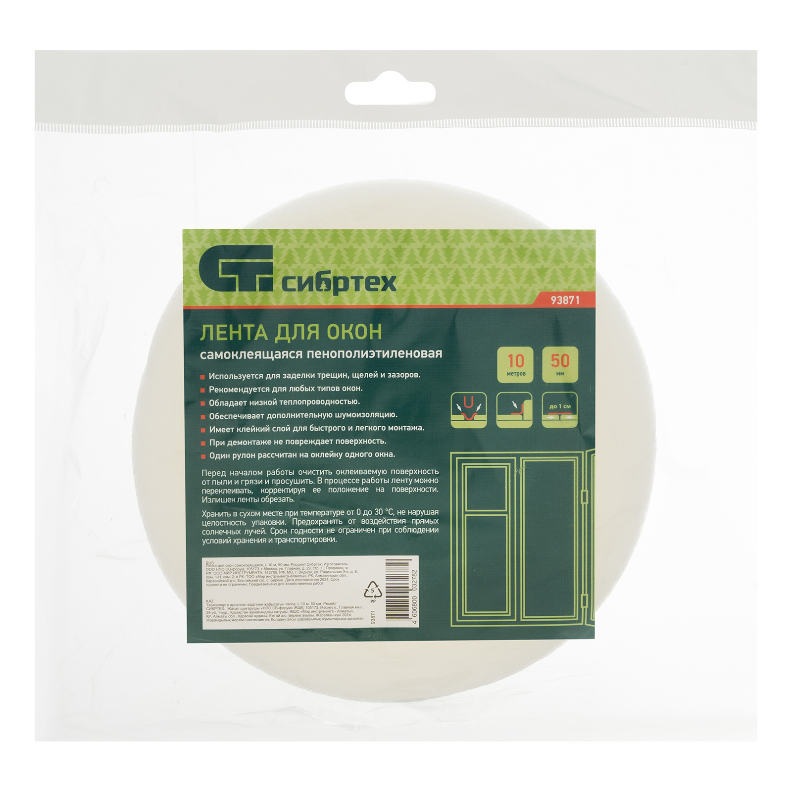 Самоклеящаяся лента для окон и дверей Сибртех 93871 шириной 50 мм и длиной 10 м используется для тепло- и звукоизоляции квартиры, офиса, магазина и других помещений. Позволяет предотвратить образование сквозняков, попадание пыли и грязи.