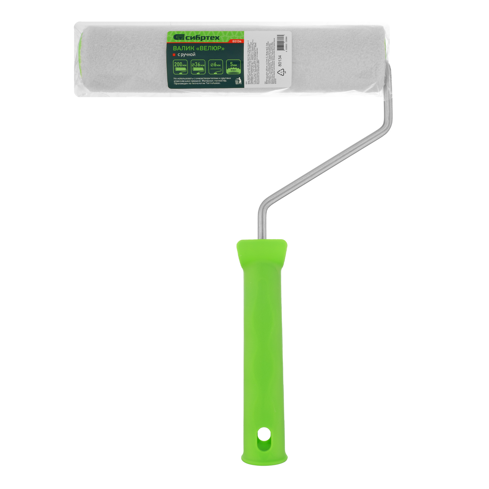 Валик Сибртех «ВЕЛЮР» 80134 с ручкой 6 мм, роликом 200 х 36 мм и ворсом 5 мм, применяется для окрашивания гладких поверхностей. Обеспечивает нанесение материалов максимально тонким слоем, поэтому оптимален для работы с лаками. Велюровая шубка изготовлена из натуральной шерсти с полиакрилом, что повышает износостойкость валика.