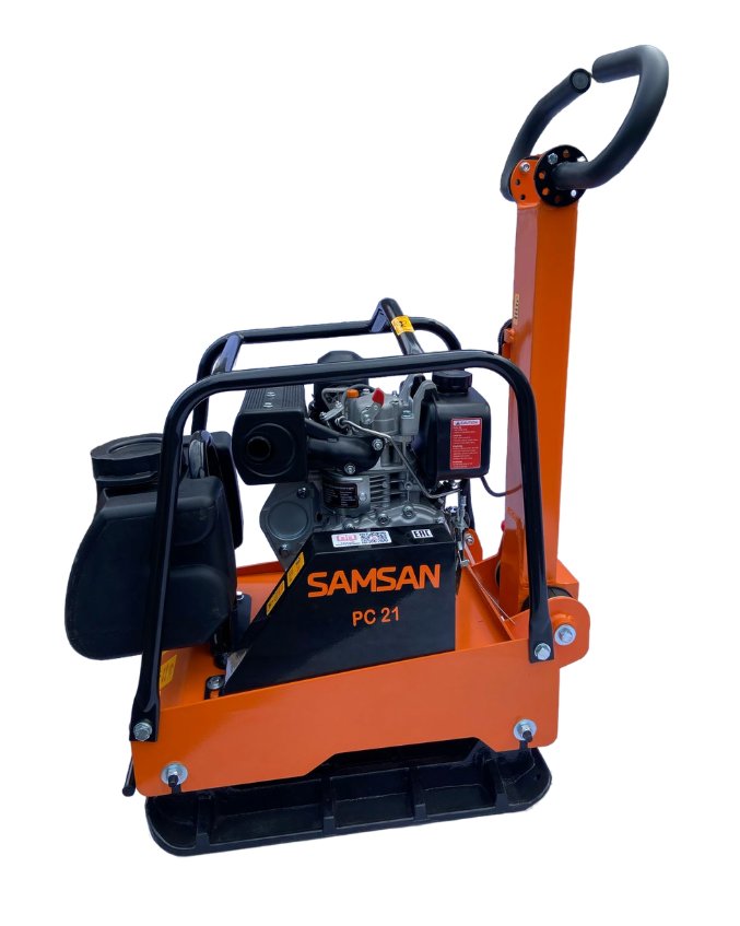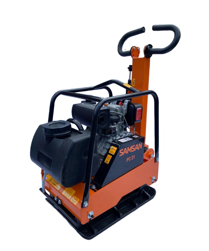 Виброплита SAMSAN PC 21 (складная ручка, бак для воды, сталь) подходит для уплотнения различных поверхностей. Благодаря специальным соединениям, понижается вибрация рукоятки. Для удобства транспортировки имеется рама и колеса, укомплектована баком для воды, по заказу поставляется с резиновым ковриком для тротуарной плитки.