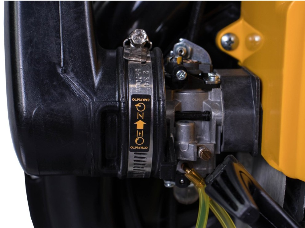 Champion GBR376 работает от надежного бензинового 2-тактного двигателя мощностью 3,67 л.с. Высокая производительность в 1548 м3/ч работы и скорость воздушного потока в 95 м/с, обеспечивается мощным и ресурсным двигателем. Для максимально простого запуска воздуходувка оснащена ручным топливоподкачивающим насосом (праймером), благодаря чему двигатель легко завести даже после длительного простоя. Объем топливного бака составляет 1.7 л, что является достаточно вместительным показателем, поэтому при работе не нужно часто отвлекаться на дозаправку. Для удобного отслеживания уровня топливной смеси, бензобак выполнен из полупрозрачного пластика.