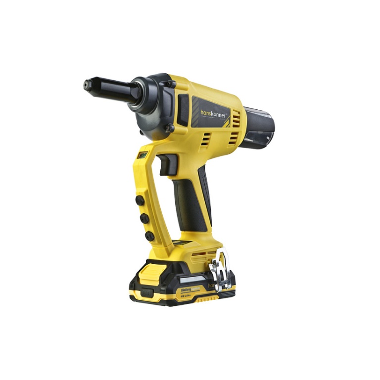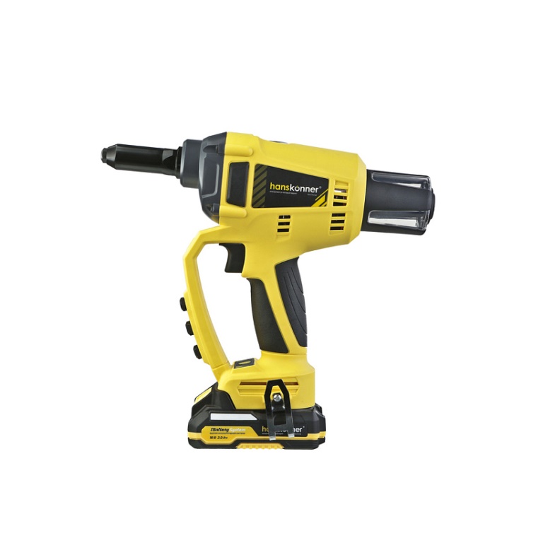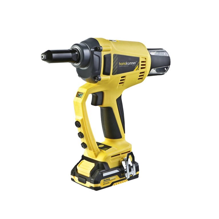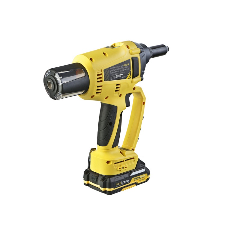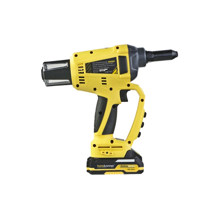 Аккумуляторный заклёпочный пистолет Hanskonner HRG18PRO является частью системы 1BatterySystem 18B и предназначен для установки алюминиевых, стальных (в т.ч. нерж.) и медных вытяжных заклепок диаметром 2.4-4.8 мм. Высокая производительность и энергоэффективность модели обеспечивается за счет наличия бесщеточного двигателя.