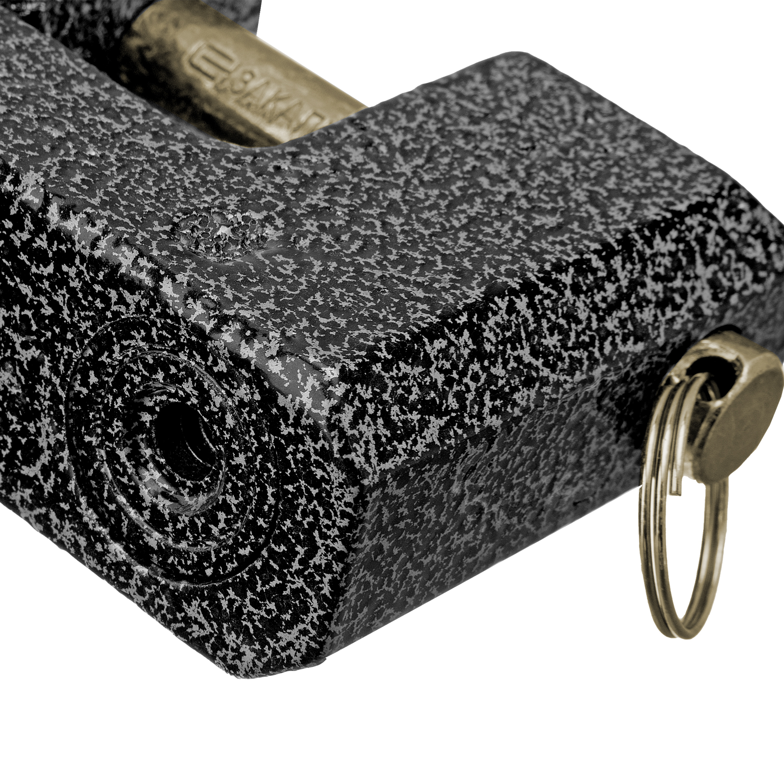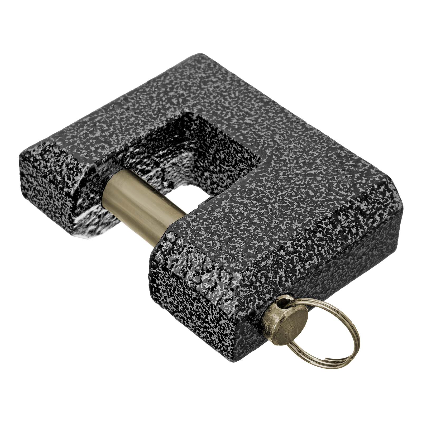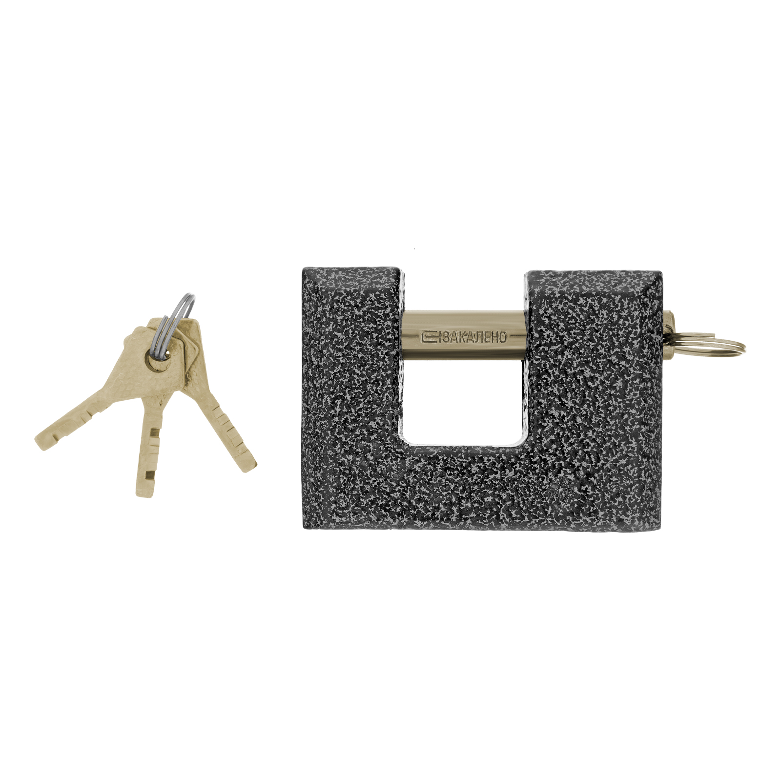 - Высокий показатель прочности — корпус изготовлен из чугуна, а дужка — из стали.