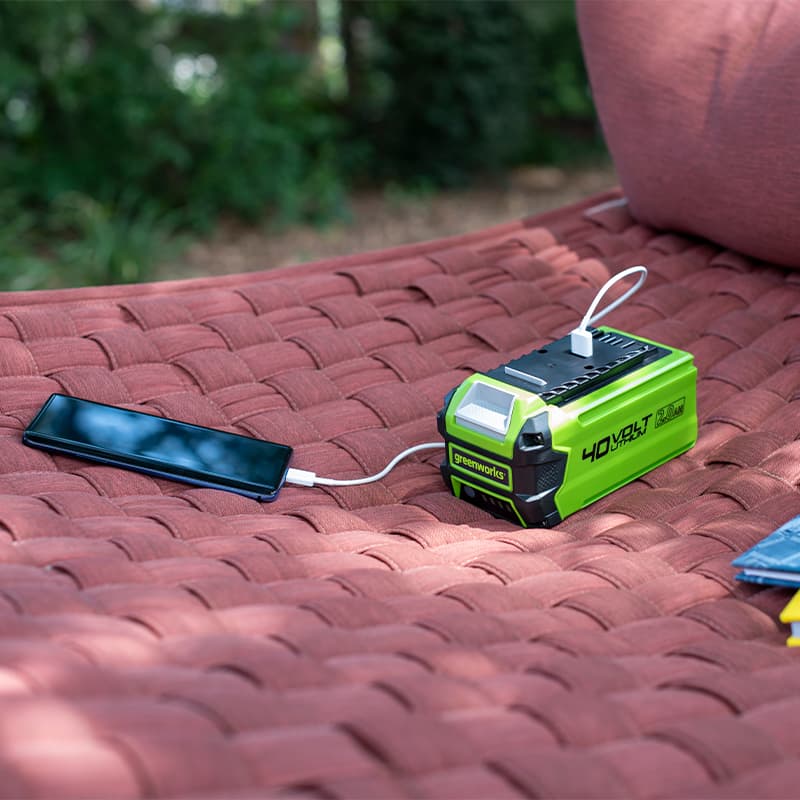Аккумулятор с USB-разъемом Greenworks G40USB2 40V 2939407 (2 Ач) — аккумулятор емкостью 2 Ач с USB-разъемом для устройств серии 40V. Оснащен чипом защиты от перегрева и перезаряда, индикатором заряда. Срок службы до 2000 циклов.