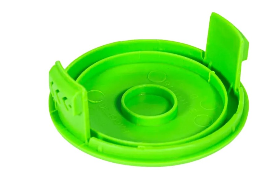 Крышка шпули пластиковая зеленая для электрического триммера 220V Greenworks 500W. Посадочный диаметр для крышки 80 мм.