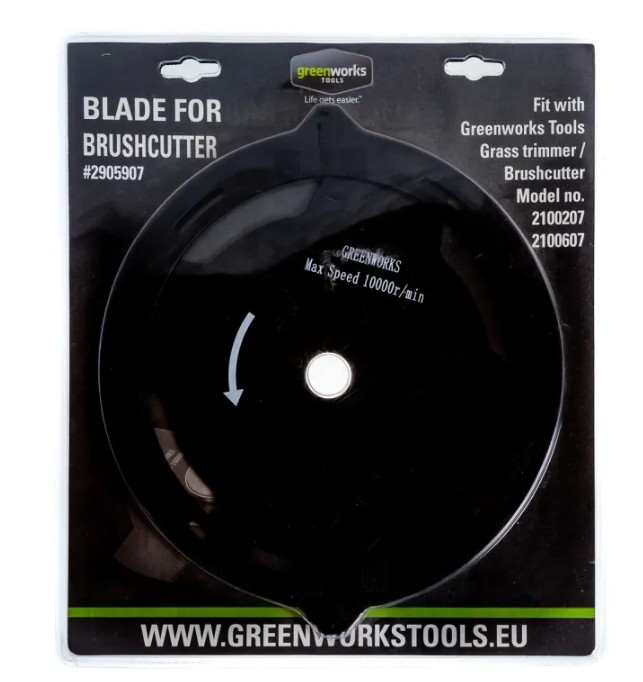 Пильный диск Greenworks 2905907 — универсальный нож, подходящий ко всем триммерам Greenworks, где возможна смена лески на диск.