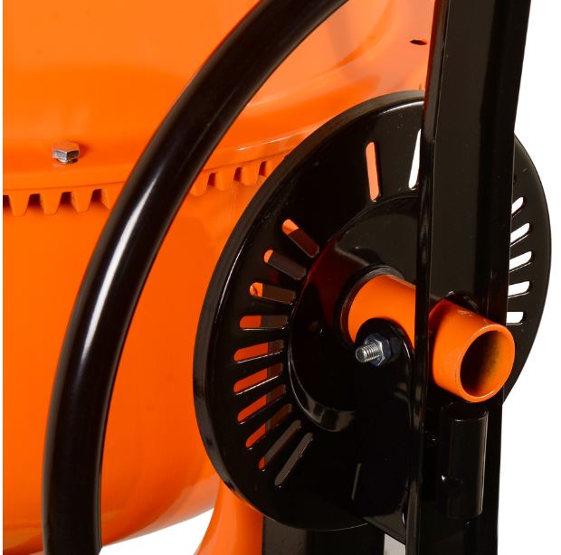 Устройство оснащено поворотным колесом, позволяющим легко опрокидывать барабан для быстрой и эффективной выгрузки готового раствора. Эта функция существенно упрощает работу оператора и сокращает временные затраты на разгрузку.