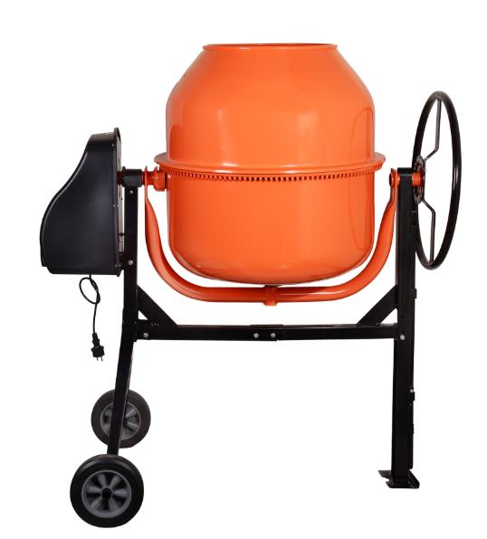 Удобный штурвал позволяет легко наклонять барабан для выгрузки готового раствора, минимизируя усилия пользователя. Бетономешалка оснащена двумя колесами, что делает ее удобной для перемещения по рабочей площадке. Яркая окраска соответствует требованиям безопасности, делая устройство заметным на строительной площадке. Кроме того, имеется защита от повторного включения при внезапном отключении электричества.