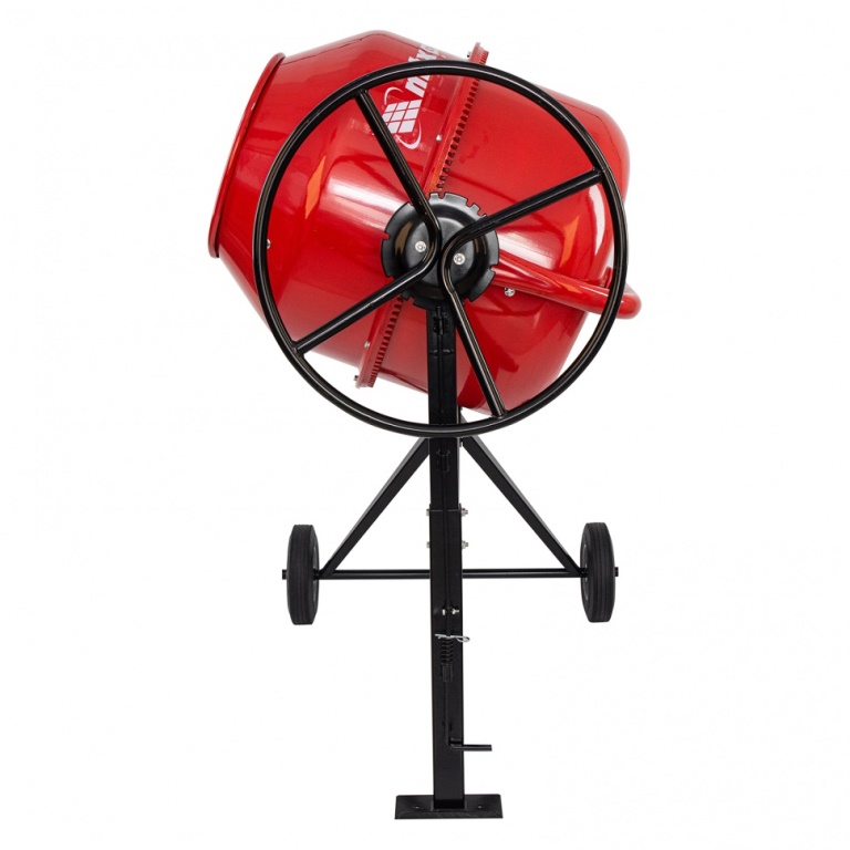 - Удобная загрузка и выгрузка смеси — барабан легко фиксируется под нужным углом при помощи педали.