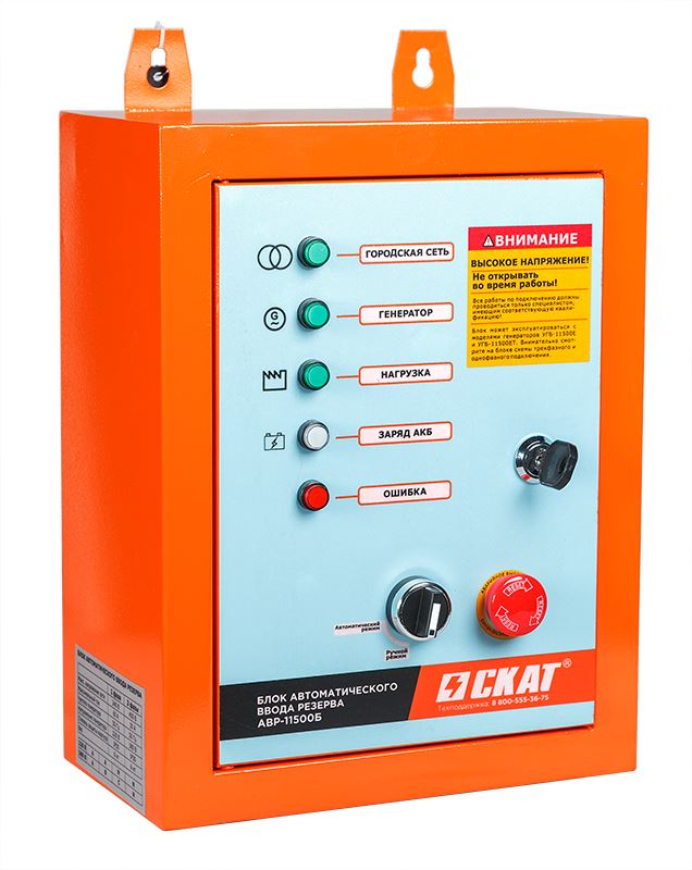 В случае отключения напряжения в центральной электросети, блок автоматики обеспечит запуск генератора. После запуска генератора через 8-10 секунд подается напряжение в домашнюю сеть.