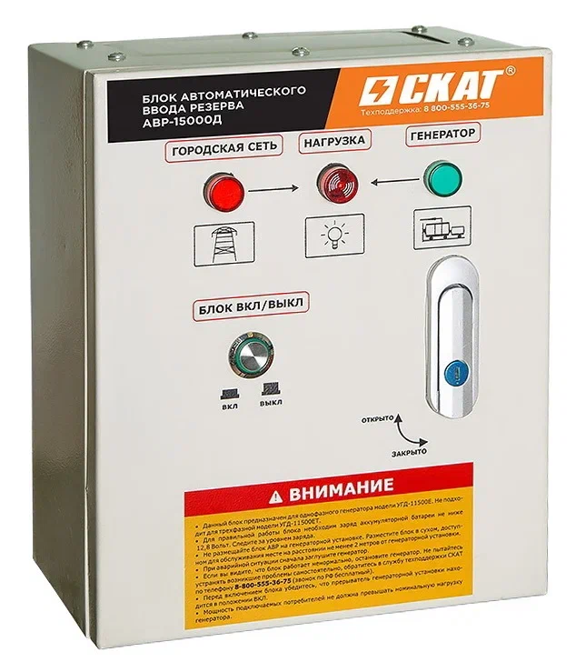 В случае отключения напряжения в центральной электросети, блок автоматики обеспечит запуск генератора.