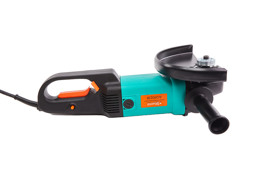 - Поворотная задняя рукоятка с защитной дугой может удобно устанавливаться в различные положения для резки или шлифовки.