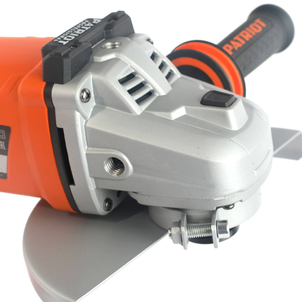 Инструмент PATRIOT отличает большая величина реальной мощности электродвигателя, что позволяет использовать прибор длительное время без риска перегрева. УШМ оснащена прорезиненной, защищенной от вибрации рукояткой, прорезиненным морозоустойчивым сетевым кабелями.