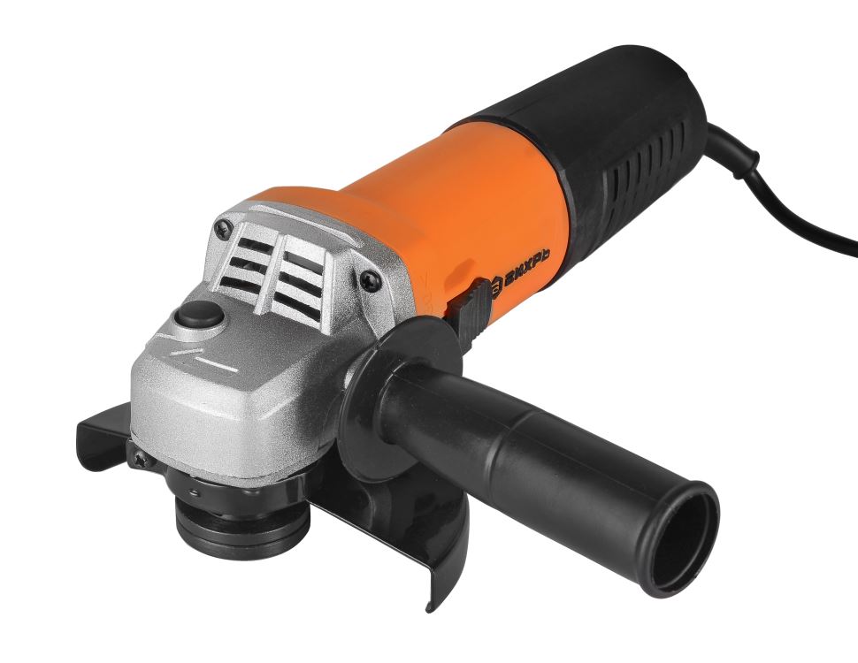 Углошлифовальная машина (болгарка) ВИХРЬ УШМ-125/1100Э - инструмент, используемый для шлифования, зачистки поверхности или резки материала. Корпус редуктора выполнен из металла. Боковая рукоятка фиксируется в трех положениях для более удобной работы. Вытянутый корпус обеспечивает надежное удержание углошлифовальной машины во время работы. На корпусе инструмента предусмотрены вентиляционные отверстия, которые защищают рабочий механизм от перегрева. Пильный диск закрыт кожухом для защиты оператора от травм. Предусмотрена кнопка блокировки шпинделя для быстрой и безопасной замены оснастки.