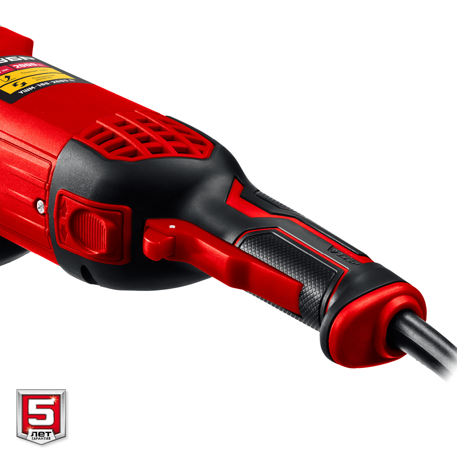 - Широкий эргономичный выключатель с пылезащитой, блокировкой непреднамеренного включения, а также фиксацией во включенном положении