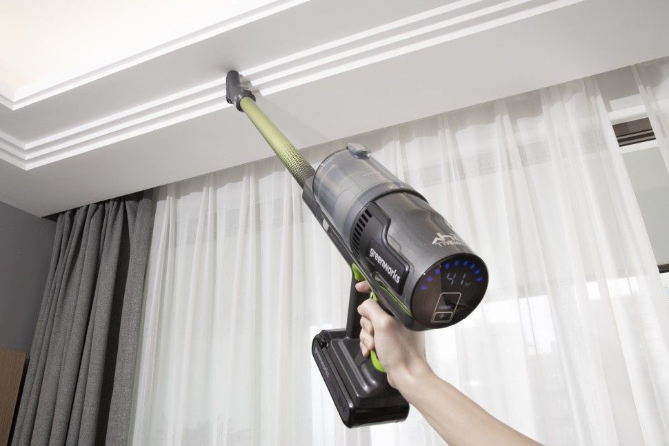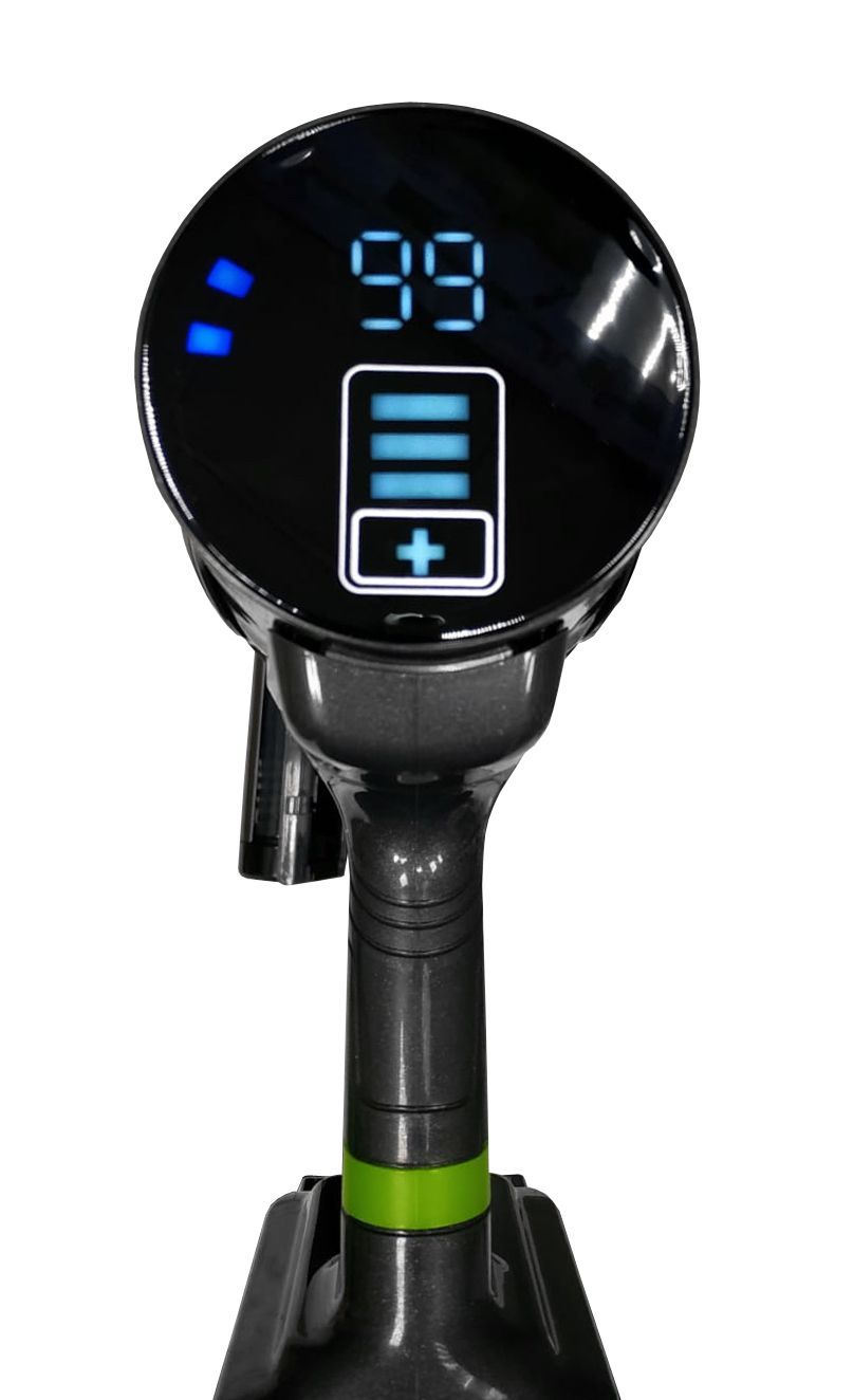 Для удобства использования пылесос оснащен LED-дисплеем с индикацией оставшегося времени работы, подсветкой на щетке для уборки мест с низкой освещенностью и специальной клипсой для хранения насадок на подставке/трубке.