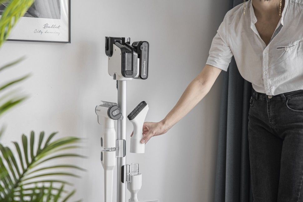 Для удобства использования пылесос оснащен LED-дисплеем с индикацией оставшегося времени работы, подсветкой на щетке для уборки мест с низкой освещенностью и 3 специальных клипсы для хранения насадокна подставке/трубке.