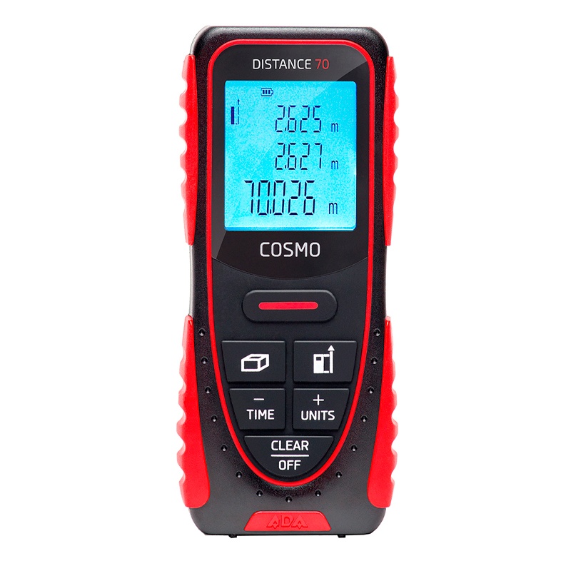 Лазерный дальномер ADA Cosmo 70 без поверки обладает дальностью работы от 0,05 до 70 м. Прибор способен измерять расстояние при любом освещении.