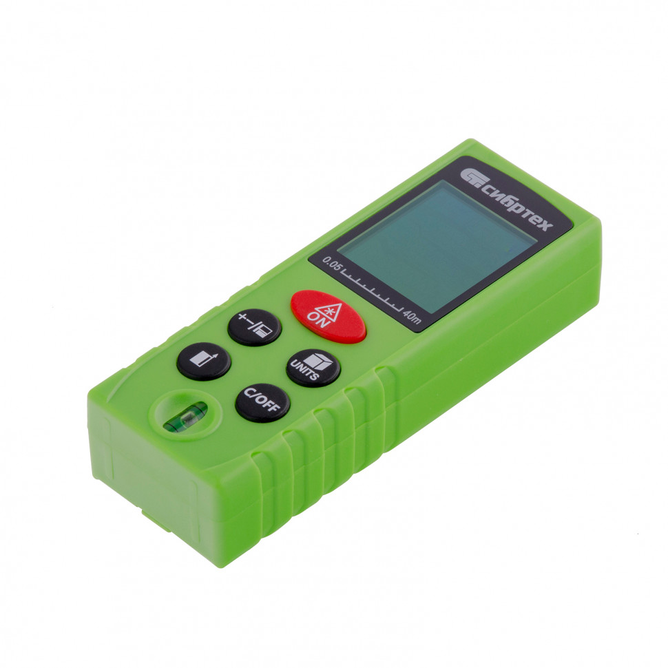Лазерный дальномер PM-40 торговой марки Сибртех предназначен для измерения линейных расстояний, вычисления площадей и объемов.