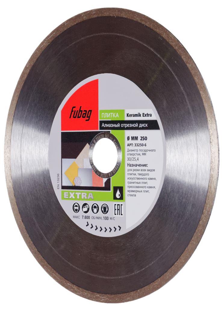Алмазный отрезной диск для плитки с сегментной режущей кромкой диаметром 250 мм и посадочным отверстием 30-25.4 мм