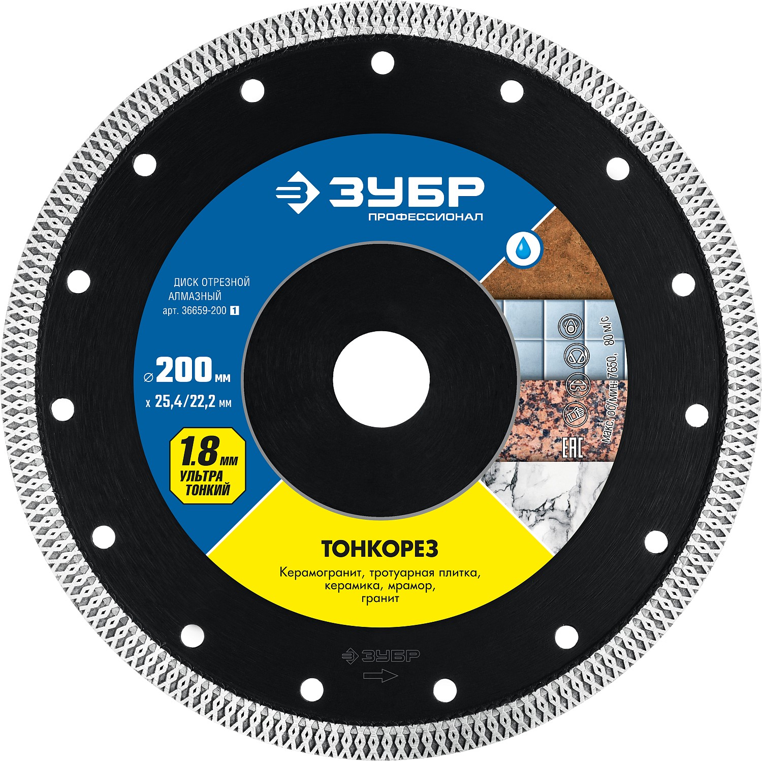 Ультратонкий алмазный диск ЗУБР ТОНКОРЕЗ 200х1.8 мм
