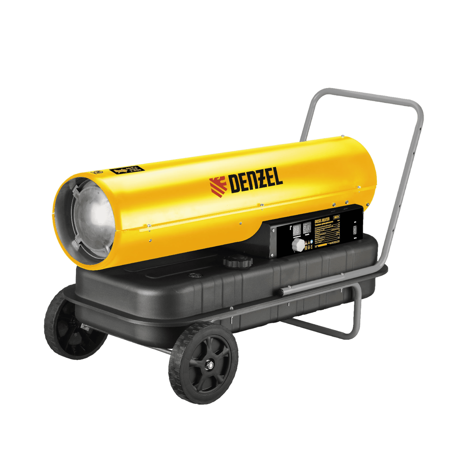 Дизельная тепловая пушка Denzel DHG-50 мощностью 50 кВт и производительностью 1100 куб. м/ч предназначена для прямого нагрева воздуха в цехах, ангарах, хранилищах и других нежилых помещениях с хорошей вентиляцией. Максимальная площадь обогрева составляет 500 кв. м. Пушка служит эффективным источником тепла в полярных экспедициях. Пригодится также на строительной площадке для прогрева бетона, просушки стен и разморозки траншей. Для заправки может использоваться любое дизельное топливо: летнее, зимнее и арктическое.