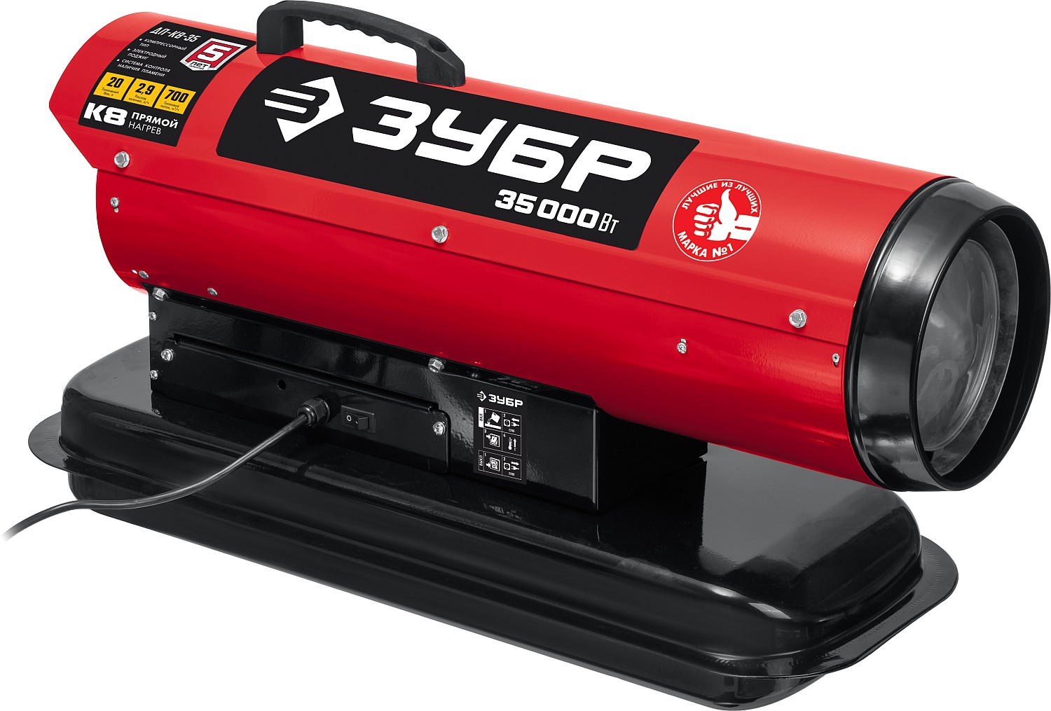 Высокоэффективный дизельный теплогенератор прямого нагрева работающий на дизельном топливе для всех климатических условий. Оптимально подходит для сушки и прогрева на строительных площадках складских комплексов и проветриваемых помещений. Надежный поджиг и эффективное горение гарантируют безотказную подачу тепла в любых условиях эксплуатации. ЗУБР - тепло всегда и везде