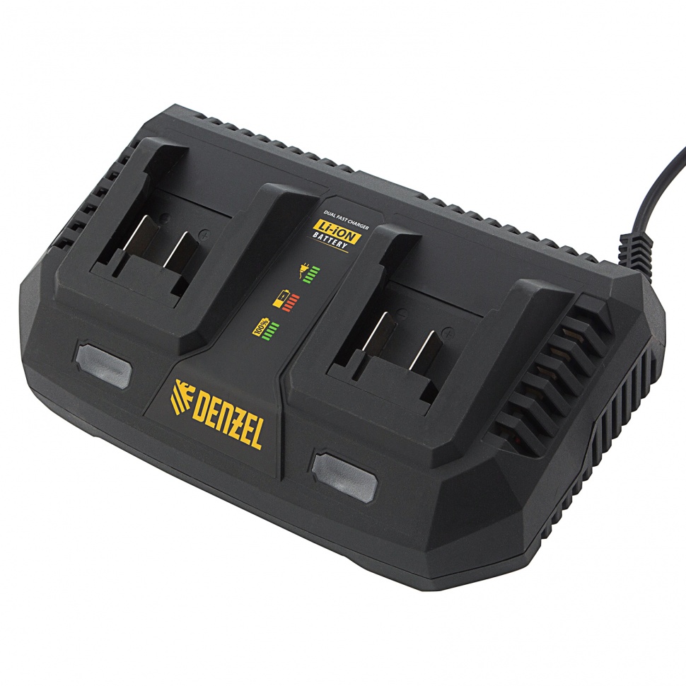 Универсальное Зарядное устройство нового поколения, подходящее для всей линейки инструмента IB напряжением 18 В и 2/18 В и всех соответствующих батарей. Позволяет с высокой скоростью заряжать две батареи одновременно. Интеллектуальное устройство для бережной и максимальной зарядки батареи и для наилучшей работы вашего инструмента Denzel.