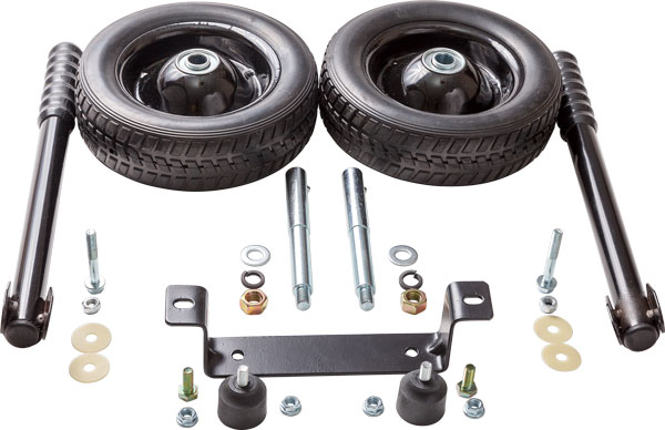 Комплект шасси предназначен для облегчения транспортировки генераторов СКАТ. В комплект входят колеса, опорные ножки и удобные обрезиненные ручки, оси и болты крепления.