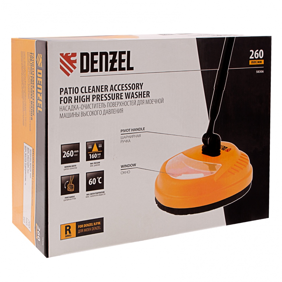 Насадка-очиститель для моечных машин высокого давления Denzel предназначена для удаления пятен с вертикальных и горизонтальных поверхностей: фасадов, стен, дверей, дорожек и т.п. Она сочетается со всеми мойками высокого давления марки Denzel R-серии.