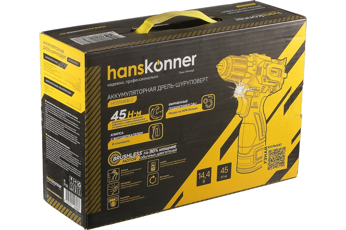 Аккумуляторная дрель-шуруповерт Hanskonner HCD1645BLC с бесщеточным двигателем — одна из самых мощных и компактных в своем классе.