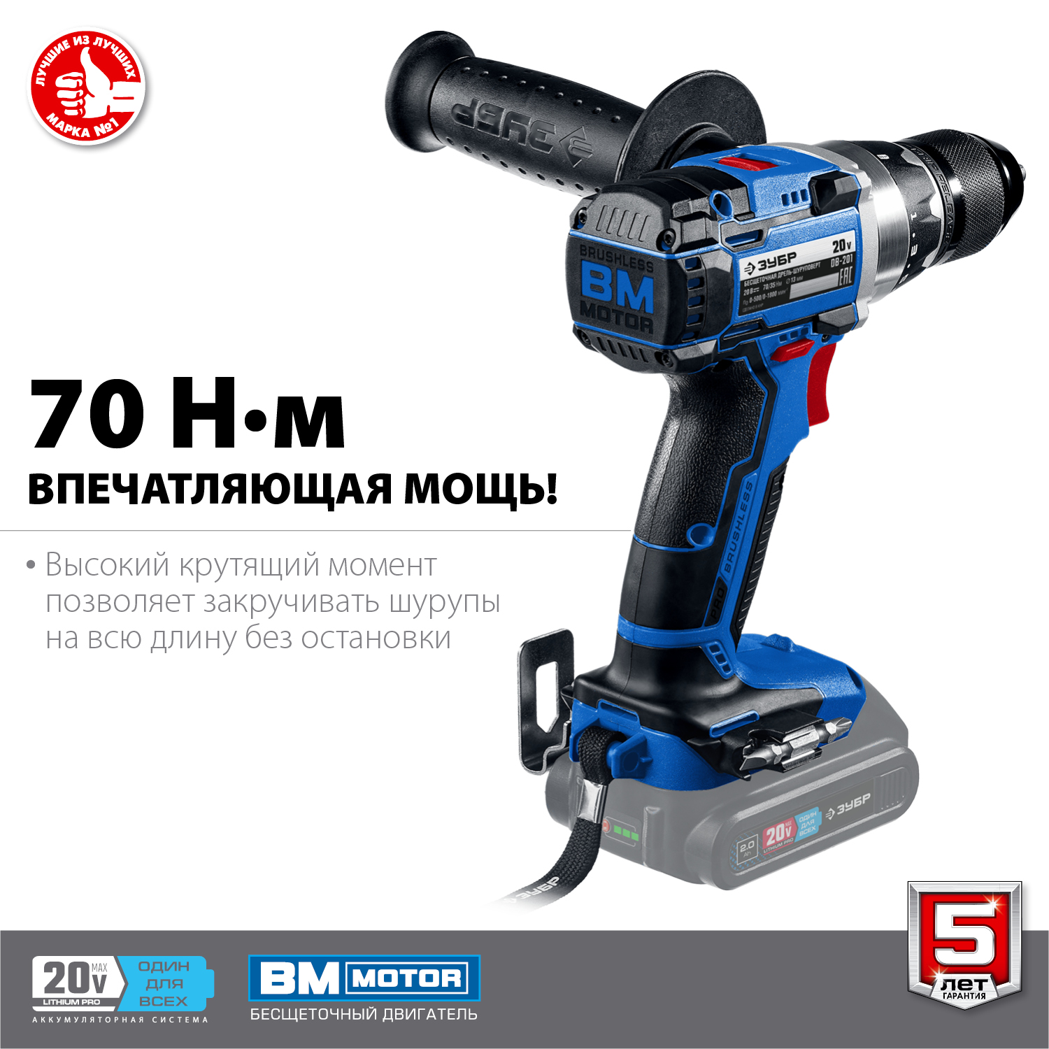 Высокотехнологичный шуруповерт профессионального уровня с передовым BRUSHLESS двигателем. Высокий крутящий момент 70 Нм, надежность конструкции и отличная эргономика позволяют выполнять практически любую работу - сверление дерева сверлом Левиса, сверление металла ступенчатым сверлом, заворачивание крепежа диаметром до 12 мм, перемешивание ЛКМ и прочее без усилий с Вашей стороны и перегрузки инструмента