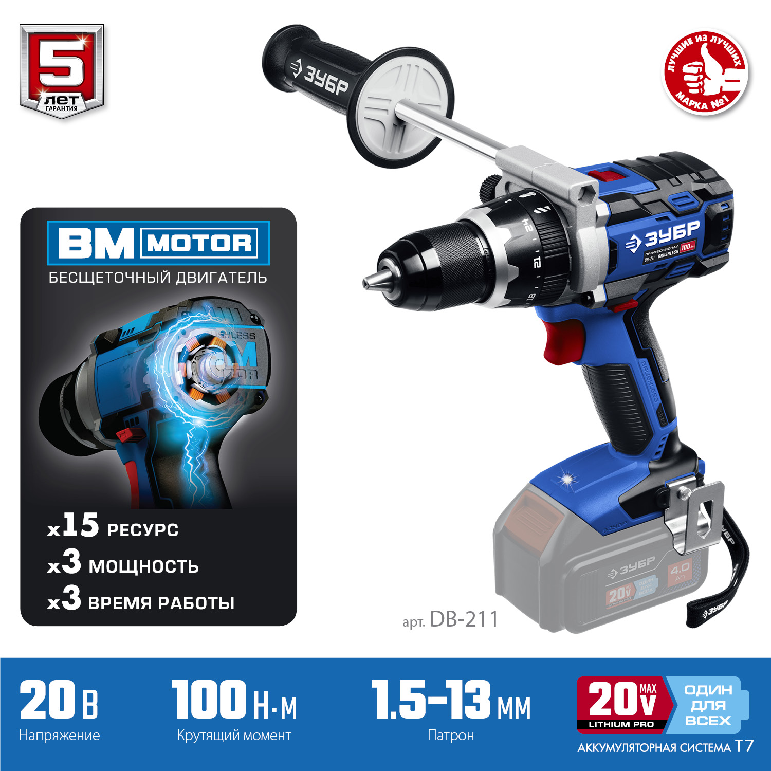 Шуруповерт высокого технологического уровня с крутящим моментом 100 Нм, что сопоставимо с некоторыми моделями гайковертов. Легко может использоваться в качестве ледоруба для сверления льда для при зимней рыбалке. Бесщеточный двигатель обеспечивает непревзойденные рабочие характеристики и долгий срок службы